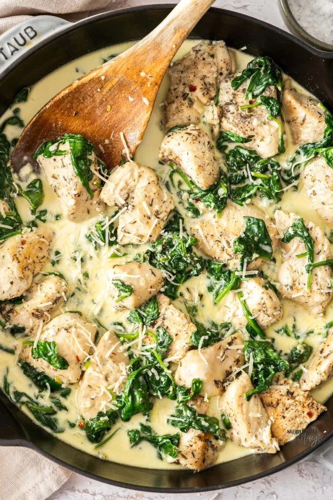 The flavor profile of Hot Creamy Garlic Chicken is rich and savory, thanks to the combination of heavy cream and Parmesan cheese. This duo not only thickens the sauce but also adds depth and creaminess that perfectly complements the chicken.
