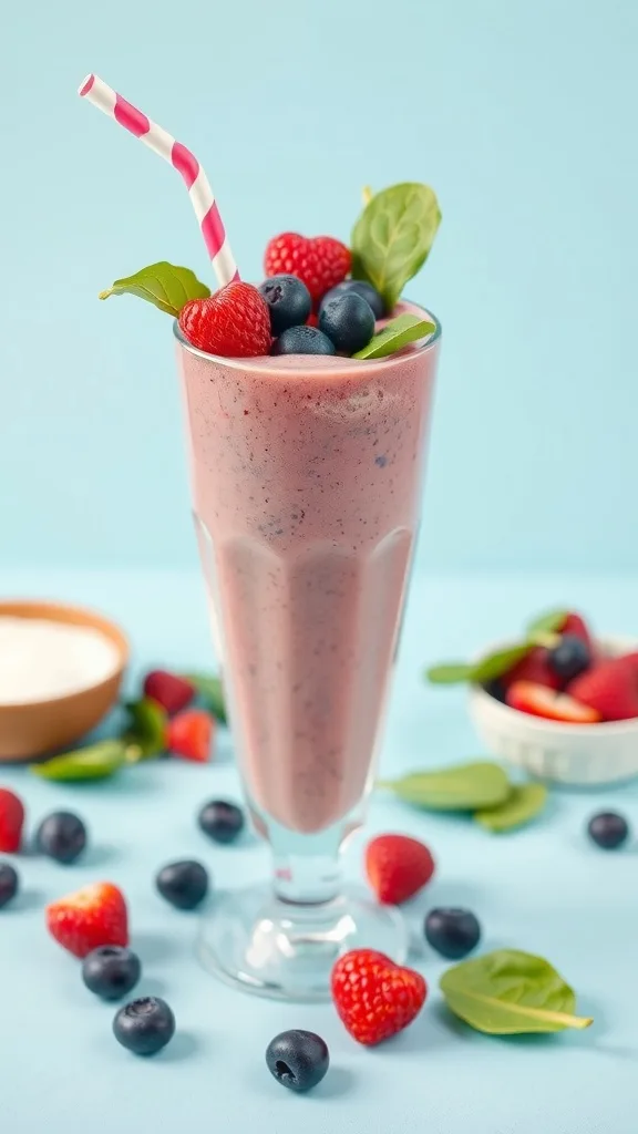 Berry Smoothie with Greek Yogurt and Spinach