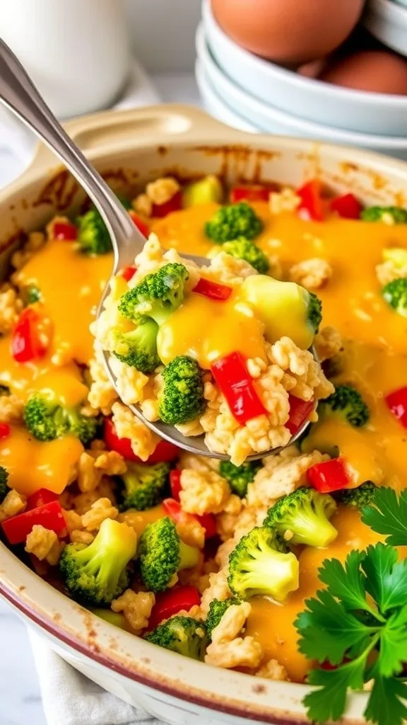This casserole features an array of fresh ingredients that contribute to its nutritional value. The combination of chicken, broccoli, and bell peppers ensures a vegetable-packed casserole that is both hearty and healthy.