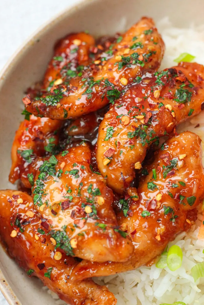 These chicken tenders are juicy and tender on the inside, while the sticky glaze creates a delightful caramelized finish. The balance of sweetness and a hint of spice makes them truly irresistible.