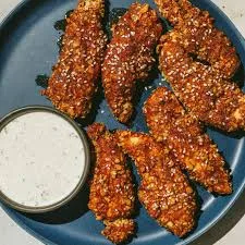 These chicken tenders are not just delicious; they offer a perfect balance of flavors, combining sweetness with a touch of spice. The outer layer is crispy, while the inside remains moist and tender, making each bite a true pleasure.